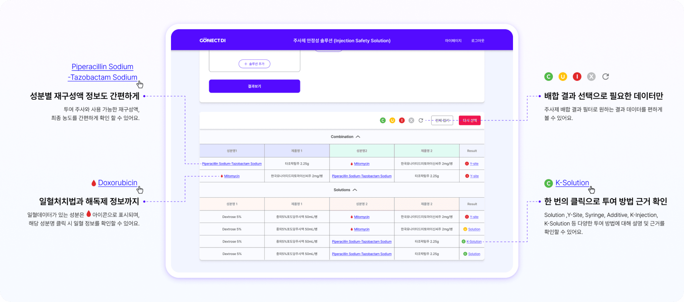 주사제와 솔루션의 올바른 배합 결과를 확인 할 수 있는 서비스이며, 주사제 안정성 솔루션(ISS)이라는 이름으로 개편되었습니다.